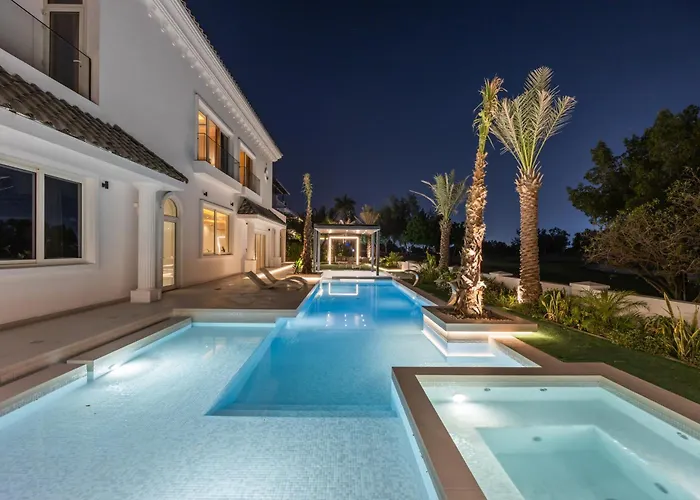 Die 1-Zimmer- Luxury Villa With Pool, Cinema & Spa - Jumeirah Golf Dubai verfügt über eine Terrasse mit Aussicht auf den Garten sowie einen privaten Swimmingpool.